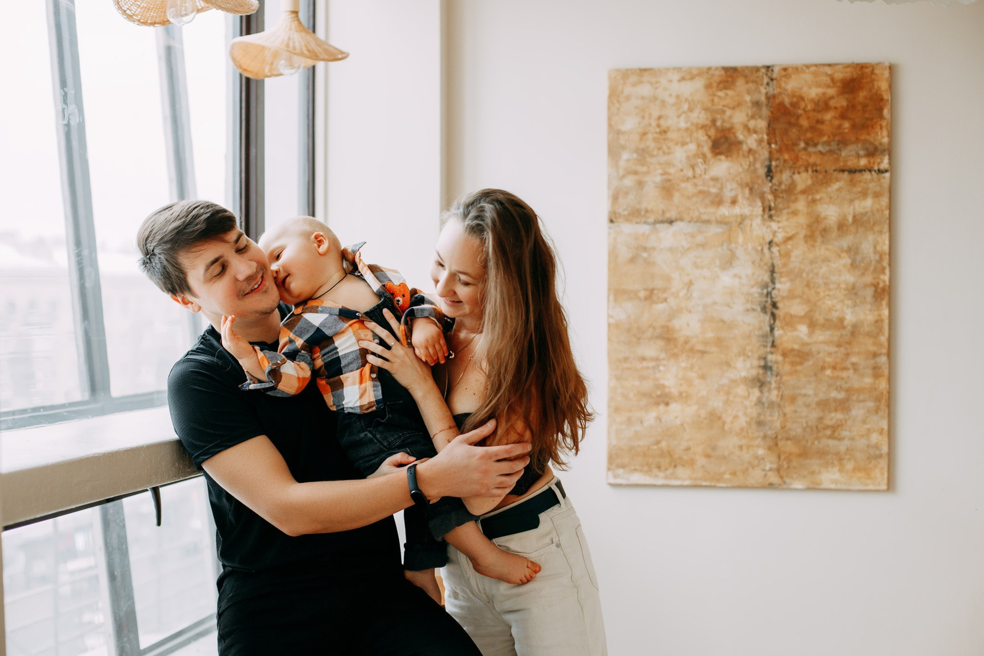 Новогодняя семейная фотосессия в темном зале